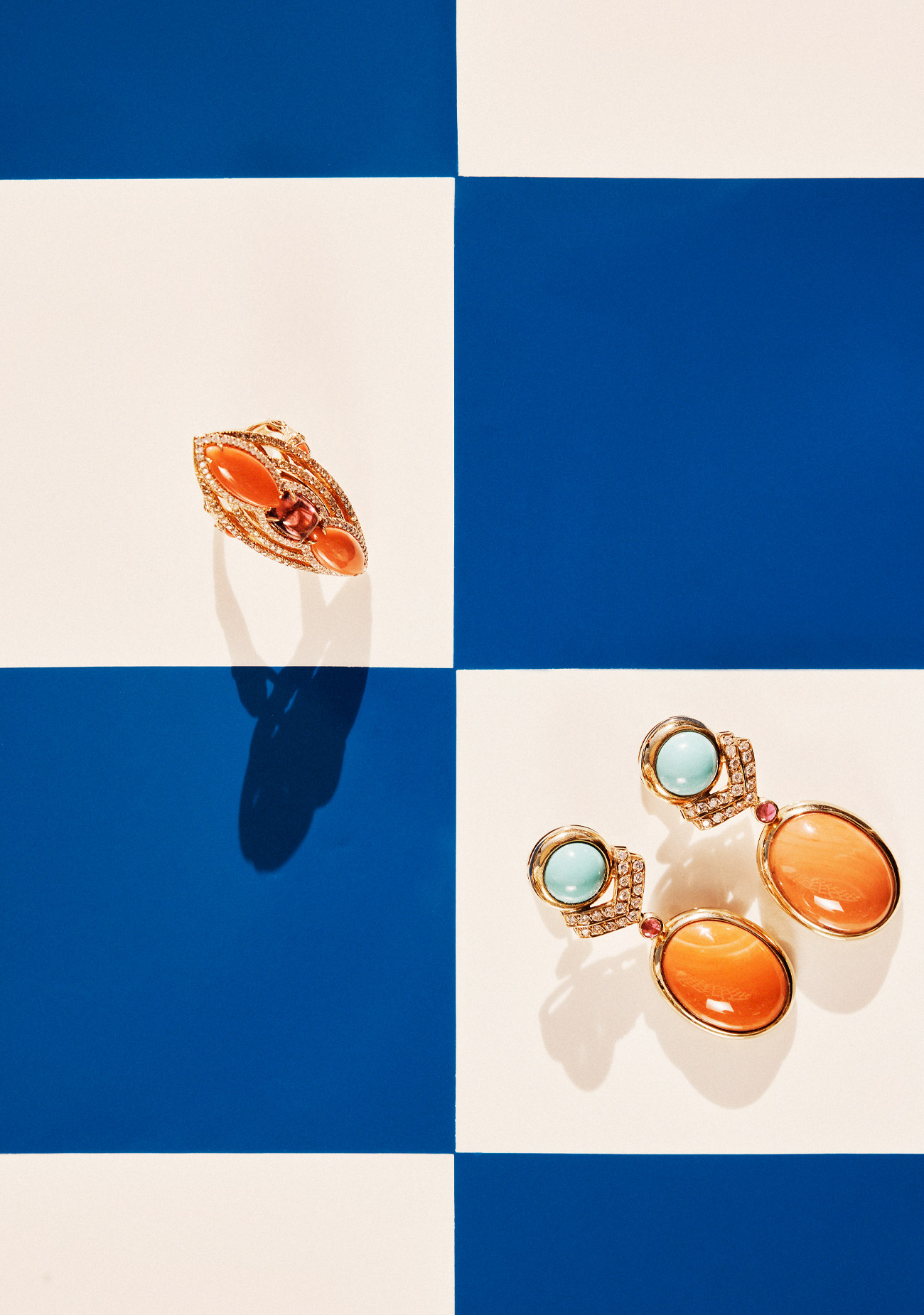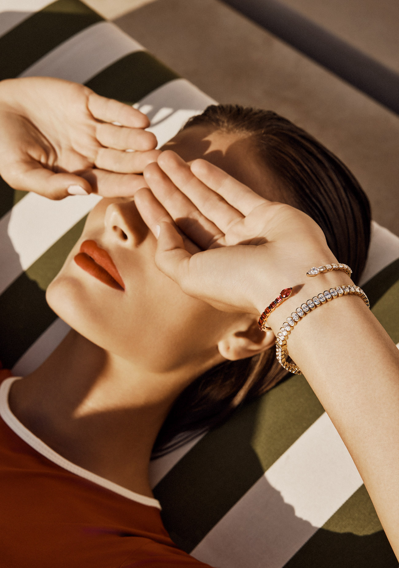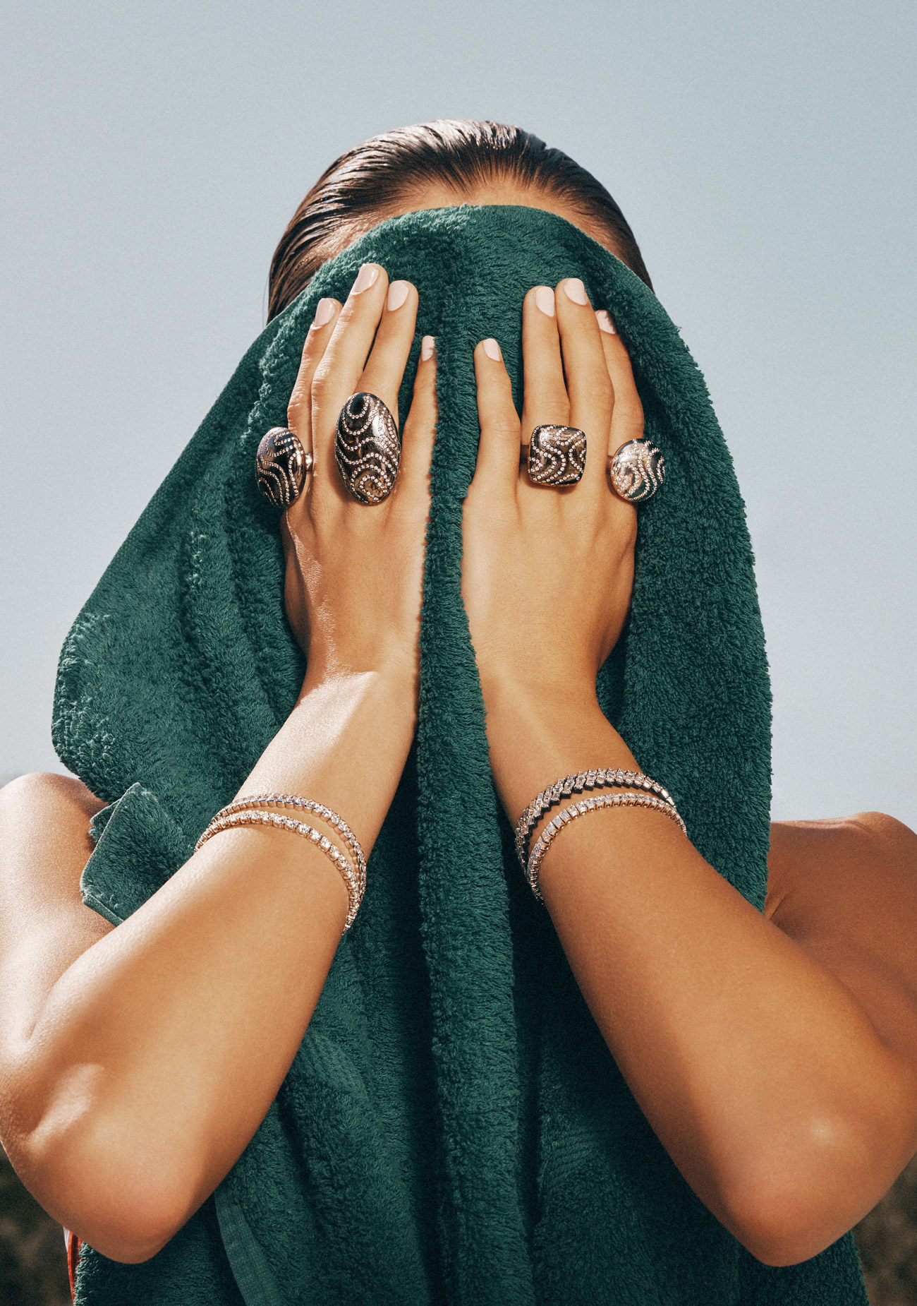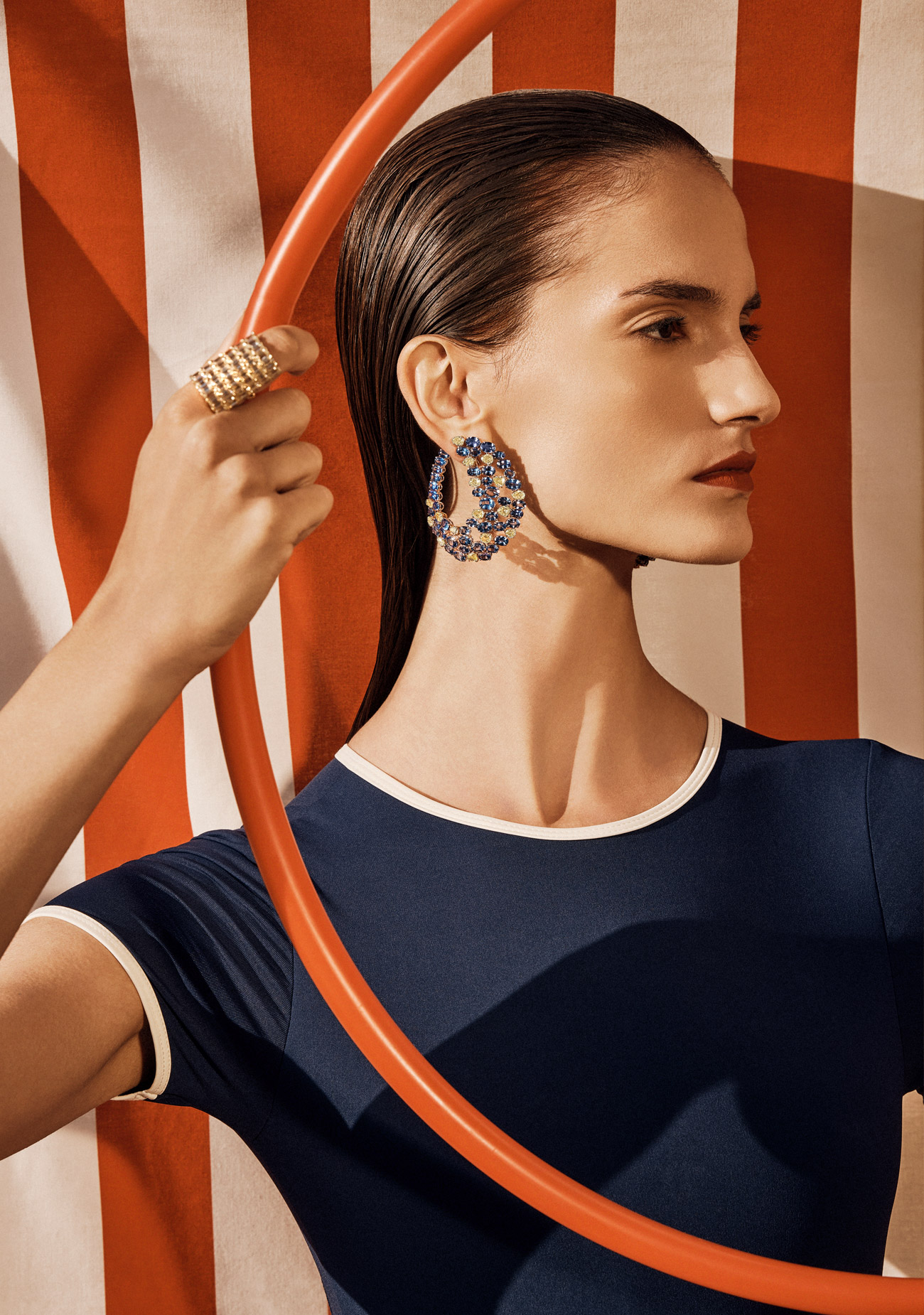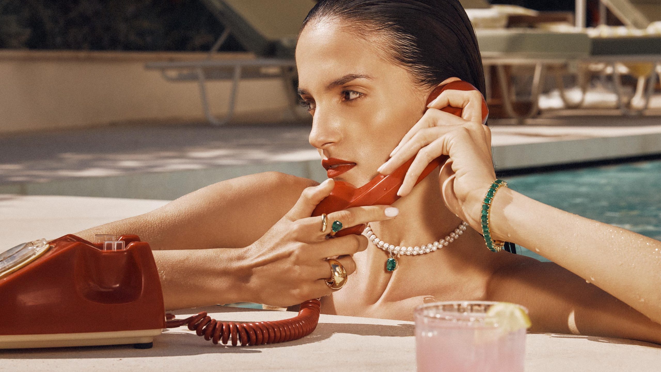 Retro-cool aesthetics, bold lines and sun-faded tones created the perfect backdrop for Kessaris’ iconic pieces to shine. A visual story where jewelry glows in the reflections of a timeless summer escape.